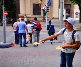 Приводим примеры раздачи печатной продукции в городской среде: